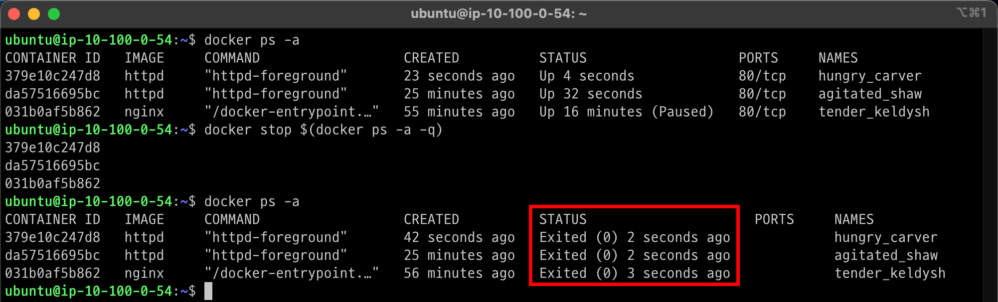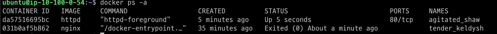 -a, --all: 실행 중인 컨테이너뿐만 아니라 종료된 컨테이너도 표시합니다.