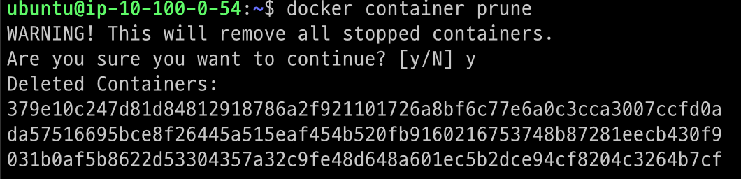 -f, --force: 실행 중인 컨테이너를 강제로 삭제합니다. f 옵션 없이 실행중인 컨테이너 삭제 명령시 명령어 실행에 실패합니다.