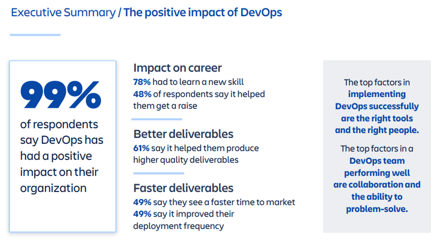 대부분의 대상자들이 DevOps 도입을 긍정적으로 받아들이고 있으며 업무가 개선됨을 느꼈다고 합니다.