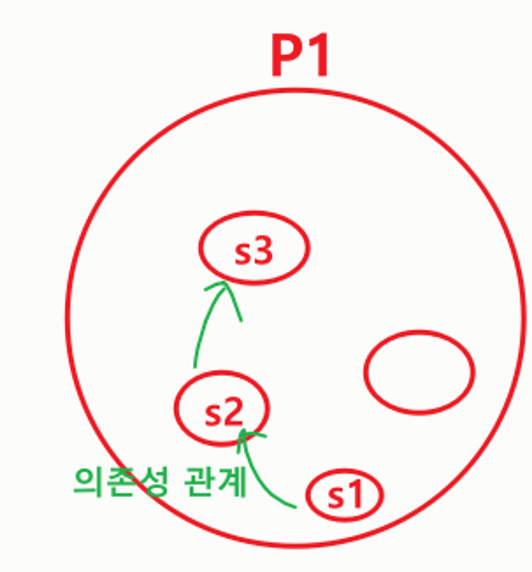 도커 컴포즈를 사용하면 같은 프로젝트 내에서도 여러 서비스의 구성과 의존성 관계를 정의할 수 있습니다. 의존성 관계란 예를 들면 s1 이 새성되어야 s2가 생성 가능한 s2는 s1에 종속됨을 정의할 수 있습니다. 예를들면 s2가 WAS서버이고 s1 이 mysql이 될수 있지요