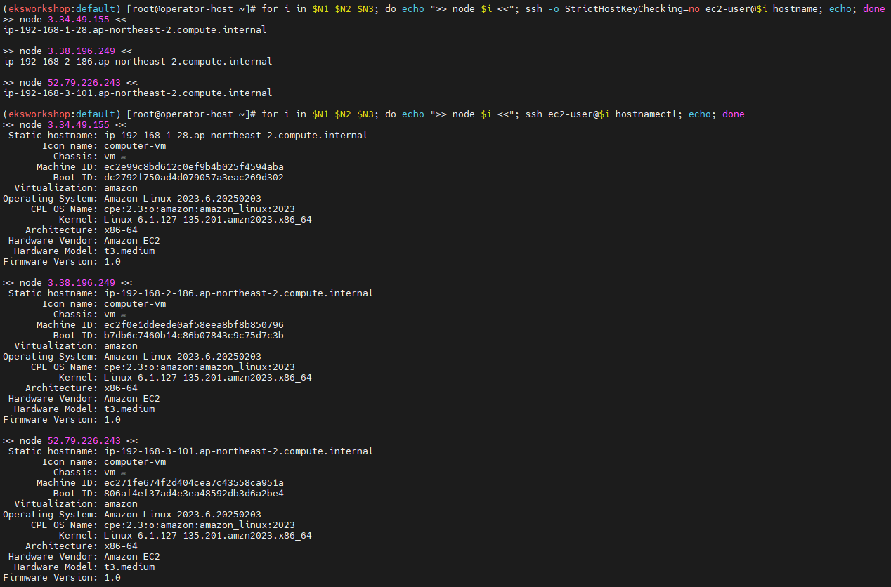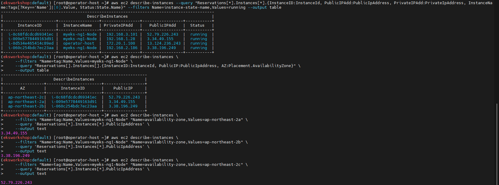 ssh -i <ssh 키파일> ec2-user@$(aws cloudformation describe-stacks --stack-name myeks --query 'Stacks[*].Outputs[0].OutputValue' --output text)