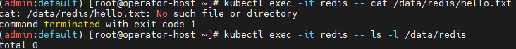 kubectl exec -it redis -- sh -c "echo hello > /data/hello.txt"