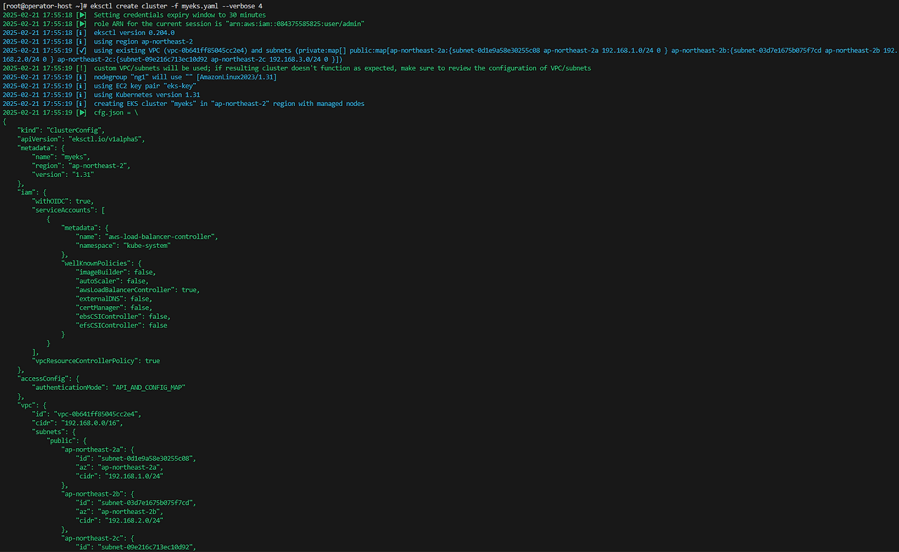 export VPCID=$(aws ec2 describe-vpcs --filters "Name=tag:Name,Values=$CLUSTER_NAME-VPC" --query 'Vpcs[*].VpcId' --output text)