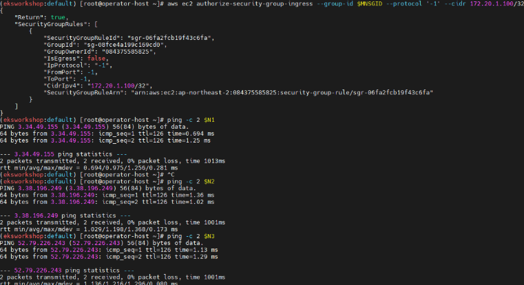 export PubSubnet3=$(aws ec2 describe-subnets --filters "Name=tag:Name,Values=$CLUSTER_NAME-Vpc1PublicSubnet3" --query "Subnets[0].[SubnetId]" --output text)