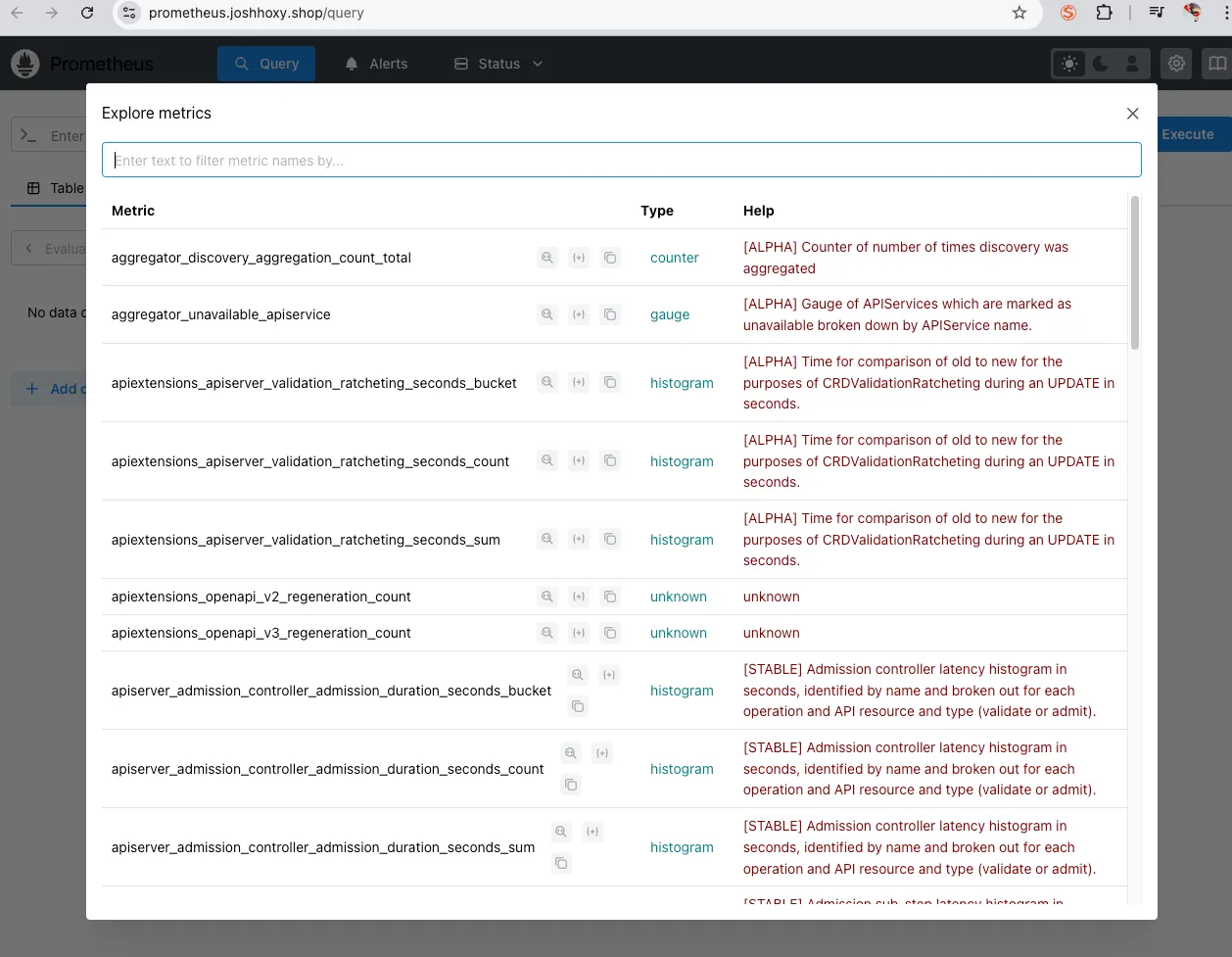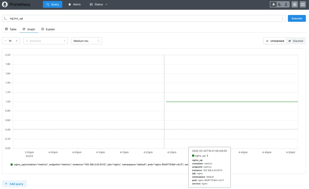 임시 파드를 하나 생성해서 해당 서비스(프로메테우스)가 정상적으로 작동하는 지 확인해 봅니다.