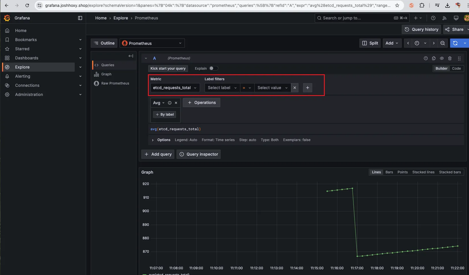 그럴 땐 다음과 같이 edit 창을 띄운 후 아래 PromQL을 본인이 필요한 대로 조정하여 커스텀하여 줘야 합니다.