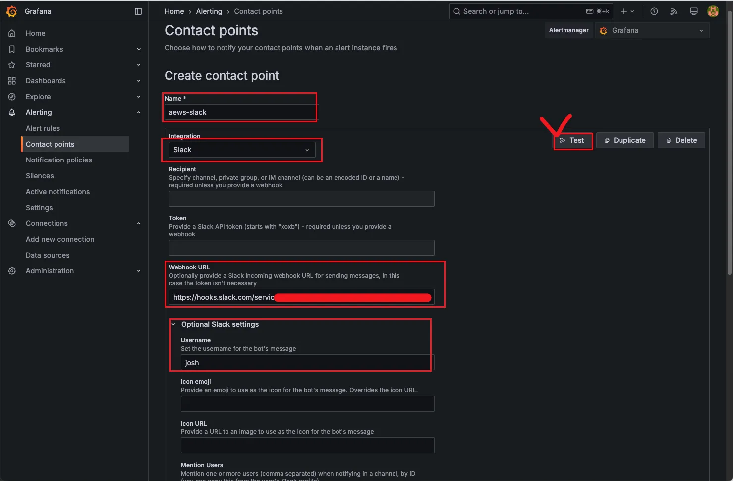 그라파나는 Alert 기능을 통해 모니터링 경보 발생 시 슬랙, 이메일, Amazon Connect 등 다양한 엔드포인트를 통해 전파가 가능합니다.