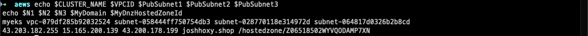 - ClusterBaseName : EKS 클러스터 이름이며, myeks 기본값 사용을 권장 → 이유: 실습 리소스 태그명과 실습 커멘드에서 사용