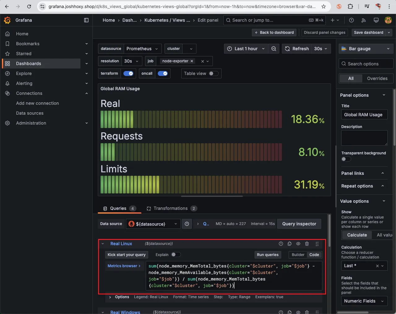 Import 한 대시보드가 한 번에 본인의 needs에 만족하면 정말 좋겠지만 대부분 본인의 SLA SLO에 따라 수정해야할 일이 있고 Unit 등의 차이로 PromQL을 다시 작성해야할 필요가 있습니다.