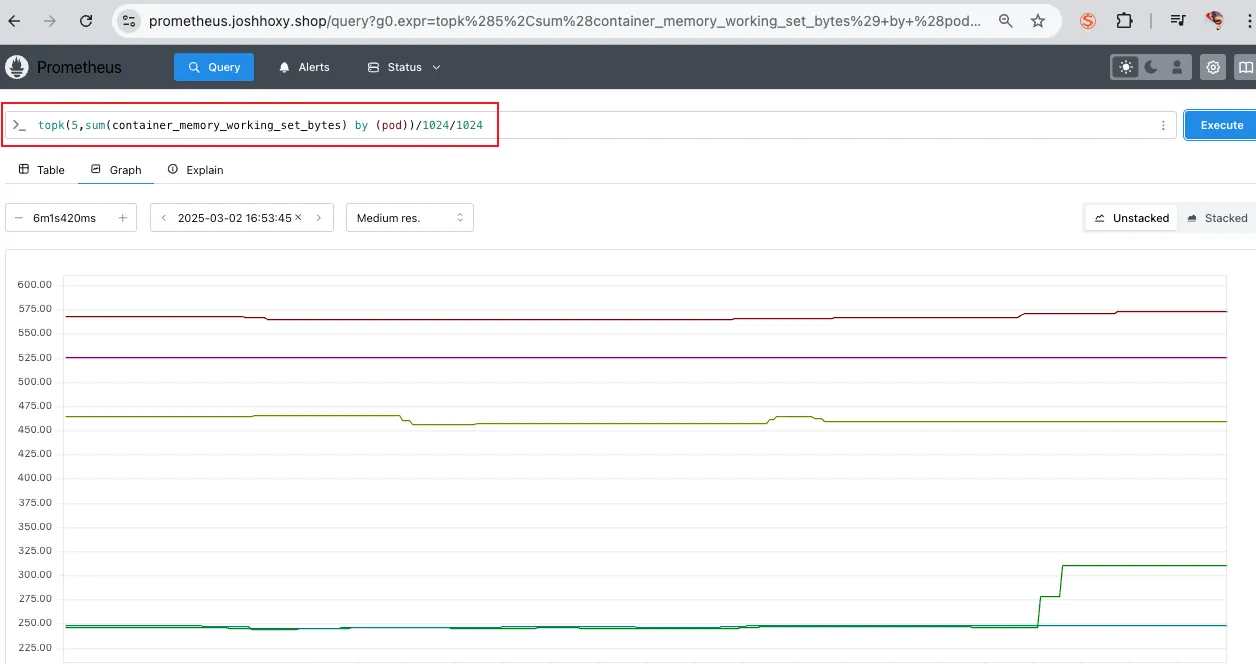 - topk(5, avg by (pod) (container_memory_usage_bytes))