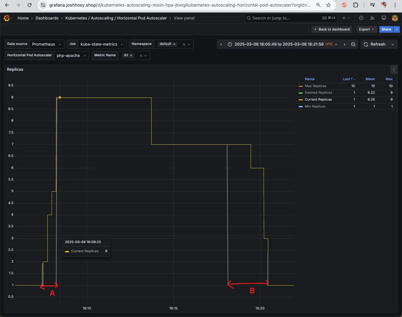 - Action: Pod의 개수를 증가 또는 감소.