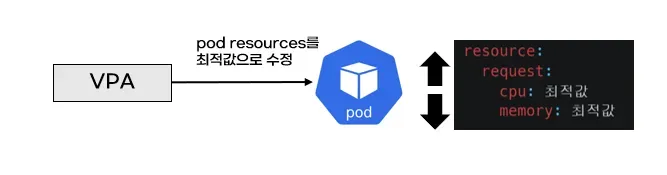 위 이미지는 VPA가 Pod의 리소스를 자동으로 최적화하여 효율적인 클러스터 운영을 지원하는 과정을 보여줍니다.