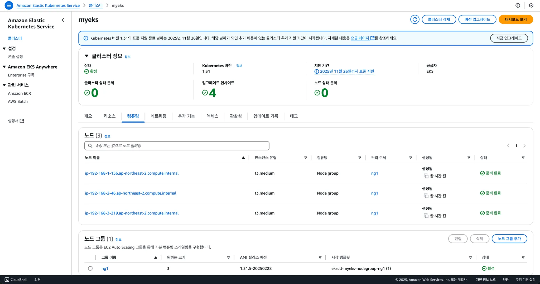 - AMI 관리: 프로덕션 클러스터에서는 테스트된 AMI 버전을 고정하여 사용하는 것이 좋습니다. 최신 AMI가 자동으로 배포되는 설정은 피해야 합니다