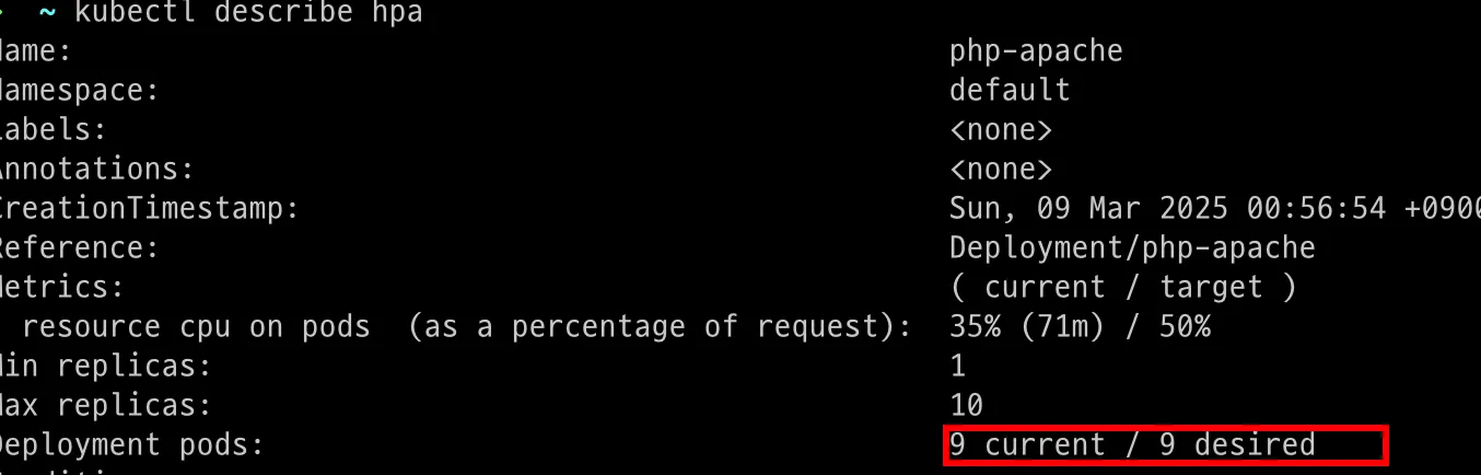 초기 CPU가 100m 이었던게 587m으로 바뀌었고 메모리도 request가 늘어난 것을 확인할 수 있습니다.