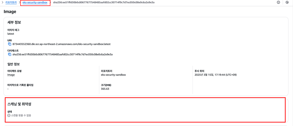 또한 CI/CD에서 자동으로 취약점 있는 이미지를 차단하는 기능이 부족하므로, Lambda 또는 EventBridge를 활용한 추가적인 정책을 구현해야 할 것 같습니다.