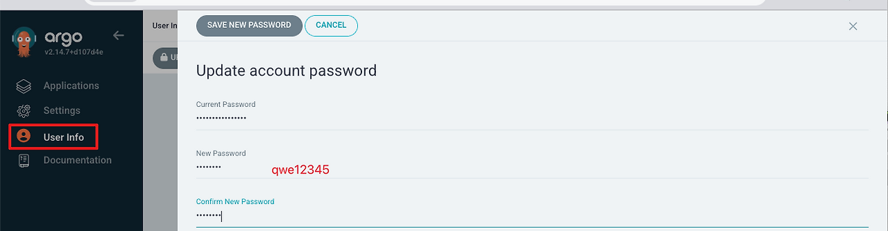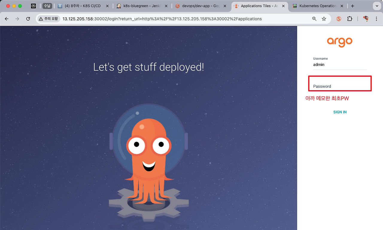 argocd 서버의 최초 접속 암호 확인. 메모해둡니다.