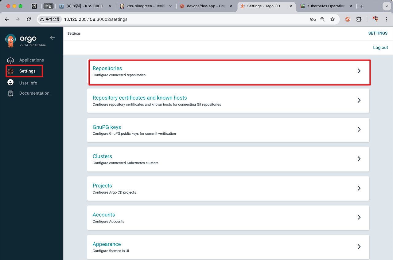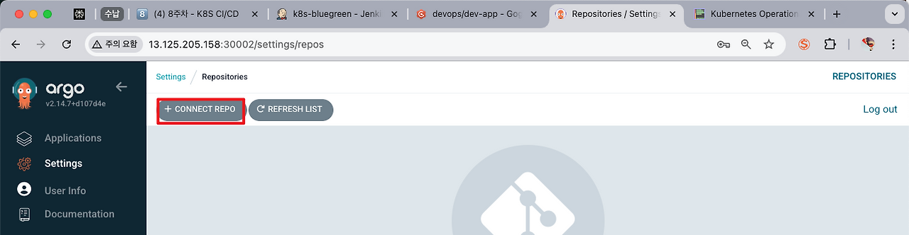 Argo CD repo 등록 (ops-deploy)