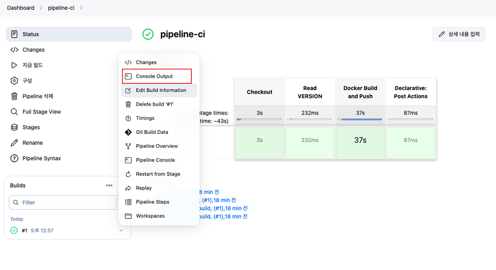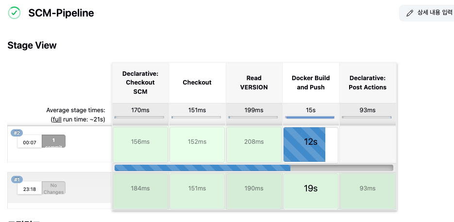 done을 선택하면 blue는 자동으로 내려가게 되고 파이프라인이 succeeded 됩니다.
