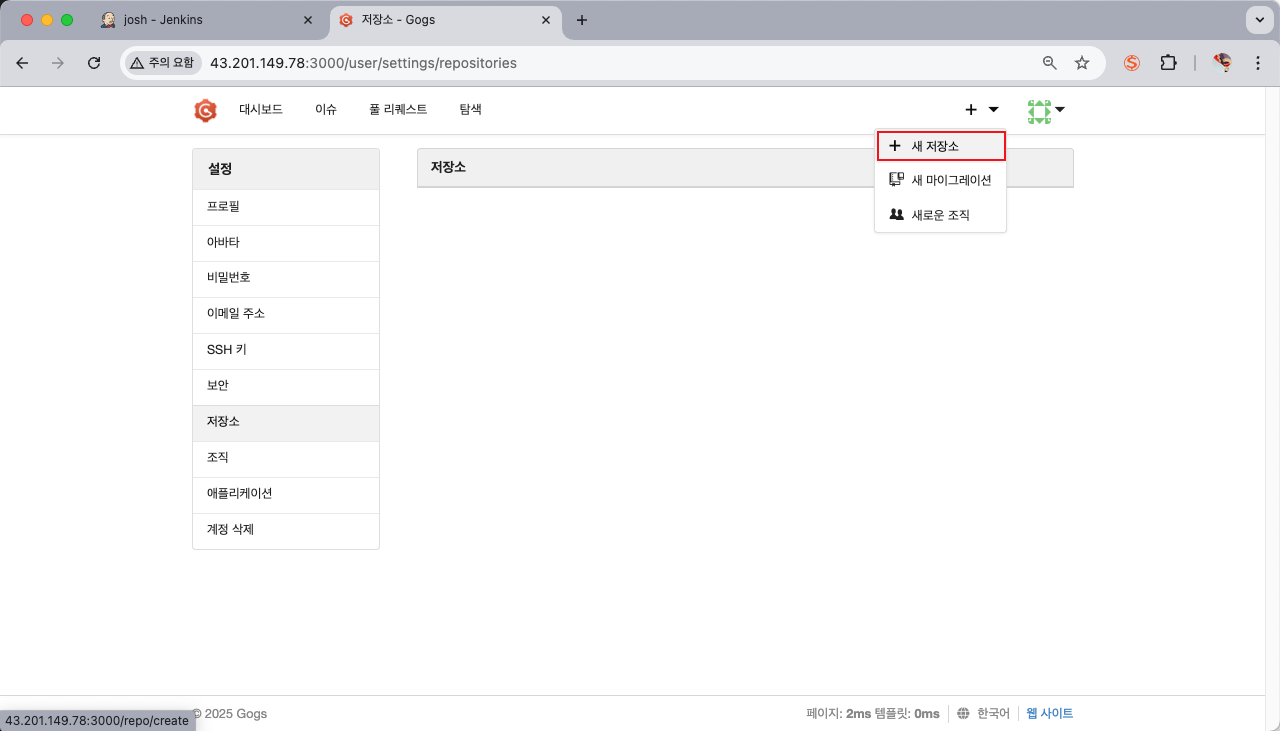 1️⃣ gogs repo 연동