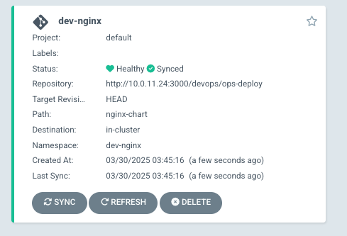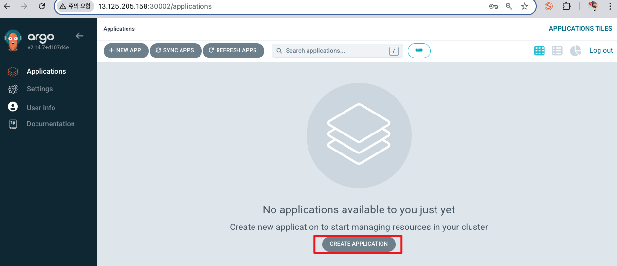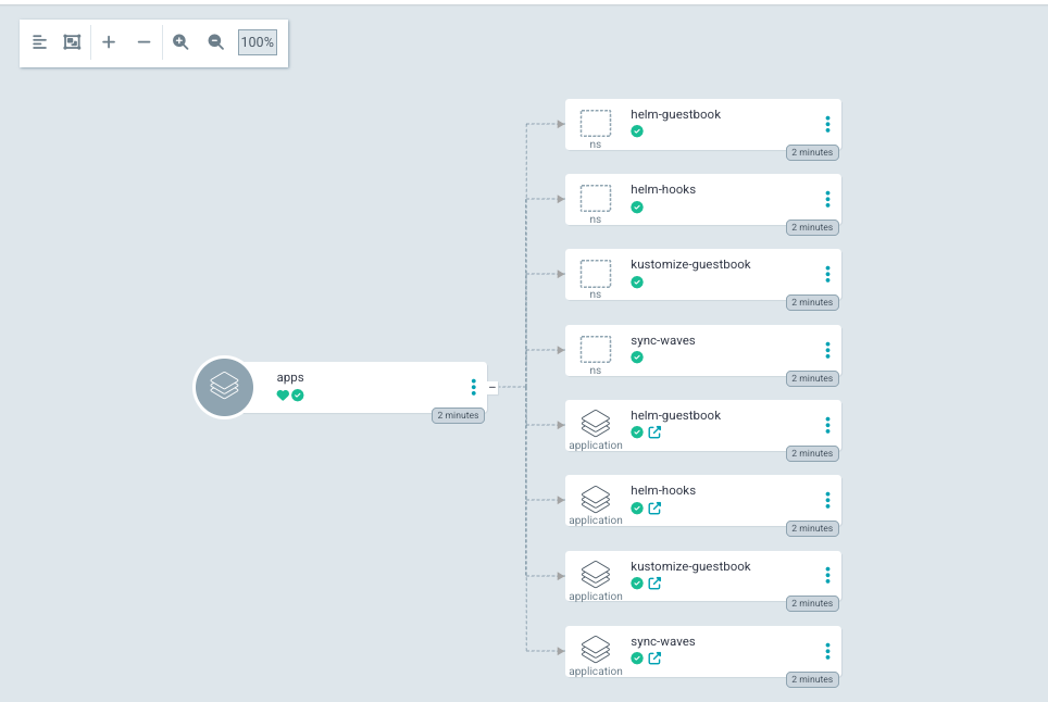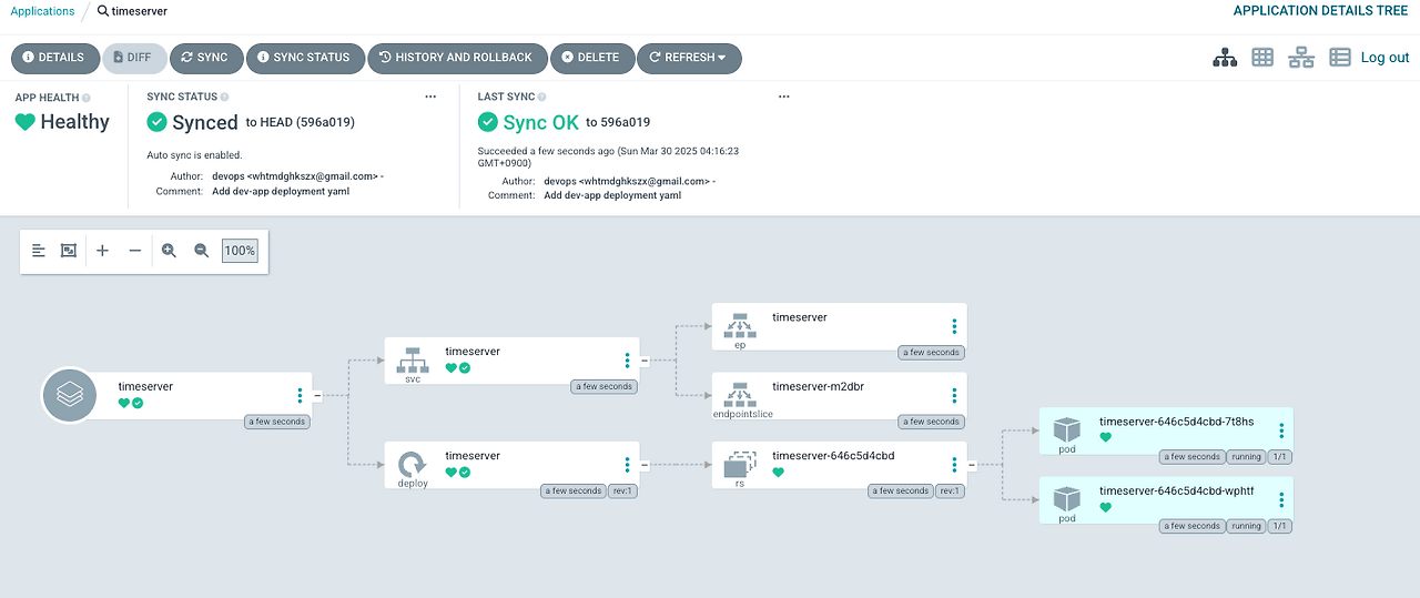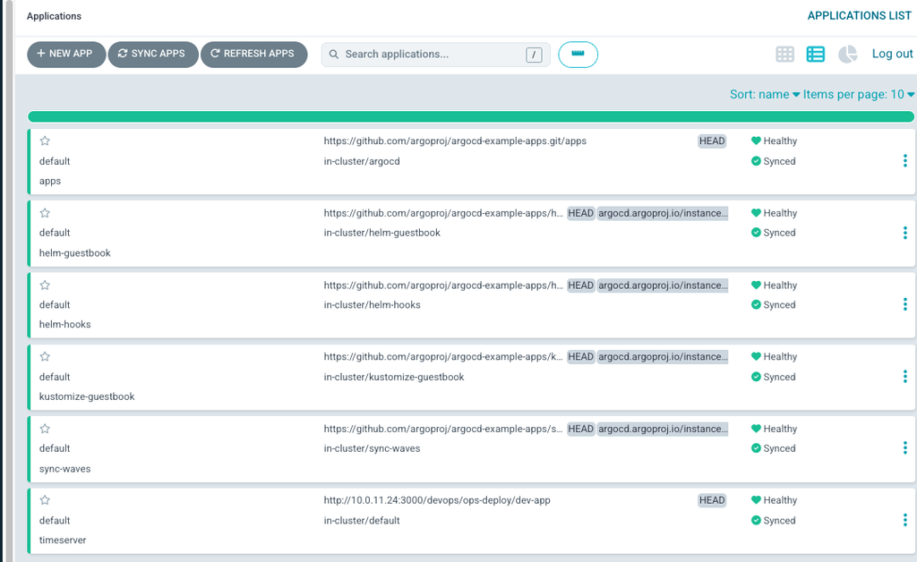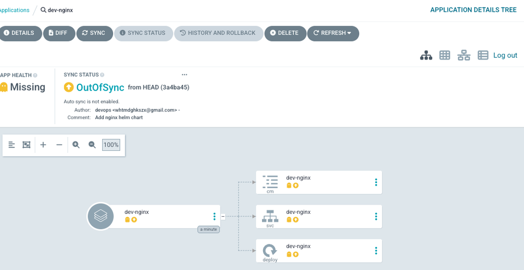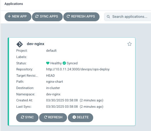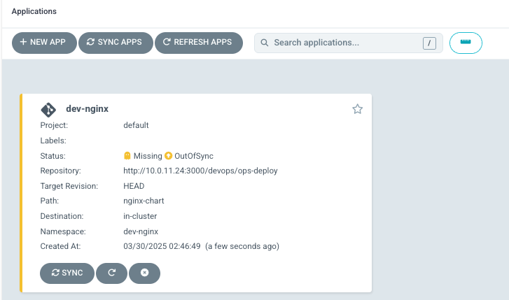 아르고 서버로 가보면 apps라는 이름의 application이 생성된 걸 볼 수 있습니다.