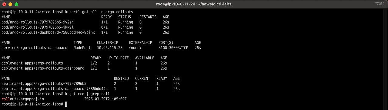 - 먼저, 롤아웃 리소스와 해당 롤아웃을 타겟으로 하는 Kubernetes 서비스를 배포합니다.