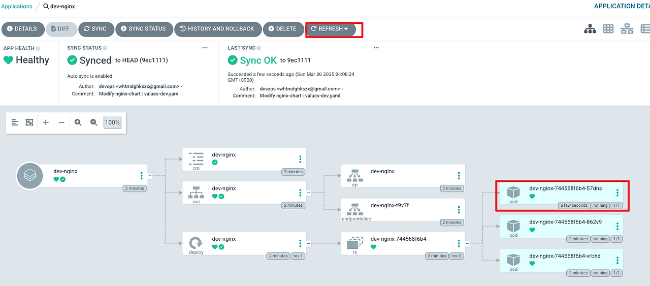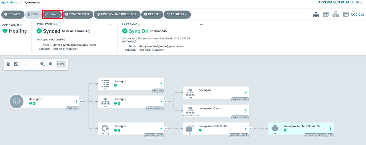 - APPLY OUT OF SYNC ONLY : 현재 동기화 상태가 아닌 리소스만 배포
