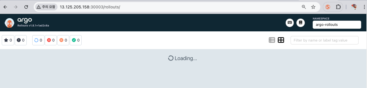 현재 롤아웃 중인 서비스가 없기 때문에 loading 으로 표시됩니다.