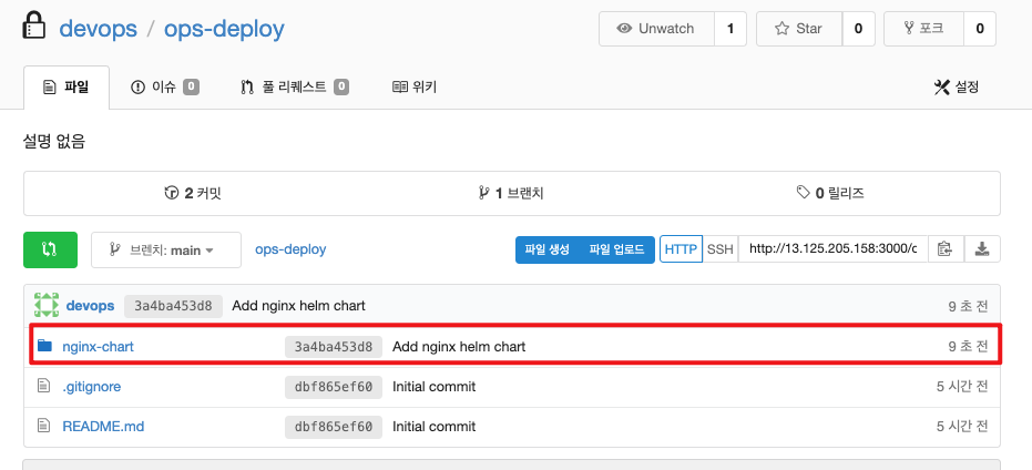 git add . && git commit -m "Add nginx helm chart" && **git push -u origin main**