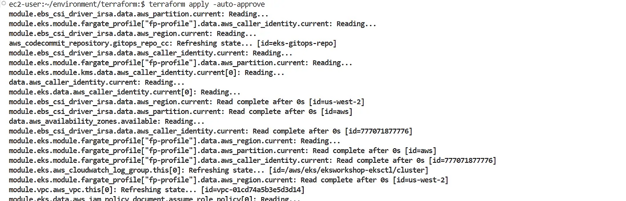 argocd/karpenter https://kubernetes.default.svc default Synced Healthy Auto-Prune <none> https://git-codecommit.us-west-2.amazonaws.com/v1/repos/eks-gitops-repo apps/karpenter green