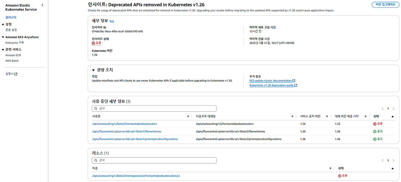 - 업그레이드 도중 문제가 생기면 전체 클러스터에 영향을 줄 수 있습니다.