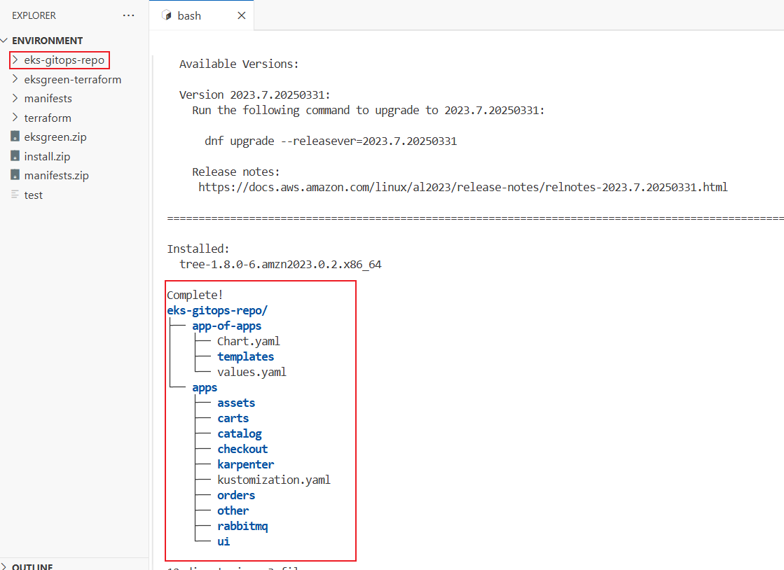 argocd/other https://kubernetes.default.svc default Synced Healthy Auto-Prune <none> https://git-codecommit.us-west-2.amazonaws.com/v1/repos/eks-gitops-repo apps/other green