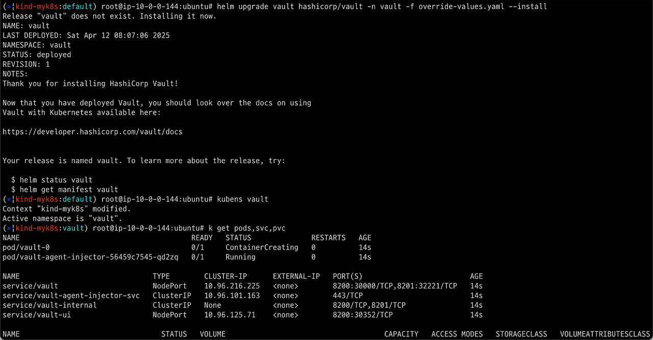 vaultdemo-79576986c7-cb5h9 0/1 ContainerCreating 0 0s