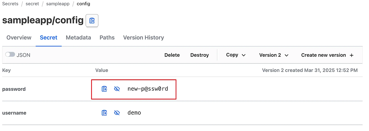 secretName: "vso-db-demo"