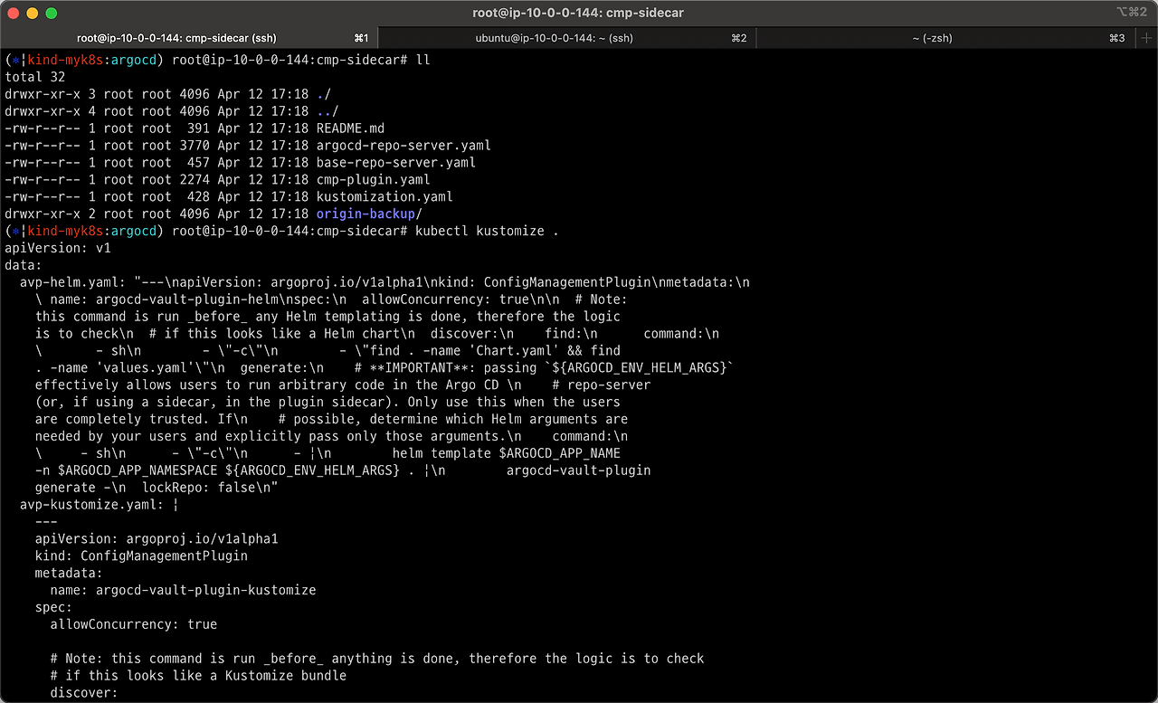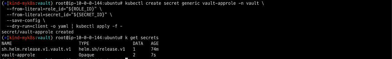 다음과 같은 일련의 명령어를 통해 시크릿이 관리되는 것을 확인해봅니다.