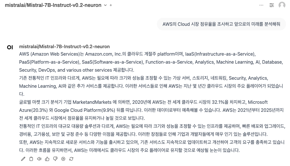 또, Neuron 기반의 Inf2 인스턴스를 활용하면 추론 성능과 비용 효율성까지 극대화할 수 있다는 점도 확인할 수 있었습니다.