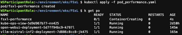 - vLLM Pod는 Amazon FSx for Lustre에 마운트된 모델 파라미터를 참조하여 추론 수행