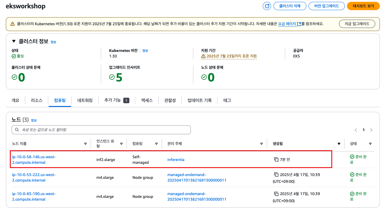 - EKS for AI Service: AWS Inferentia 가속 컴퓨팅 노드풀을 Amazon EKS 클러스터 내에 구성하여,생성형 AI 애플리케이션의 실행을 위한 전용 노드로 활용합니다.
